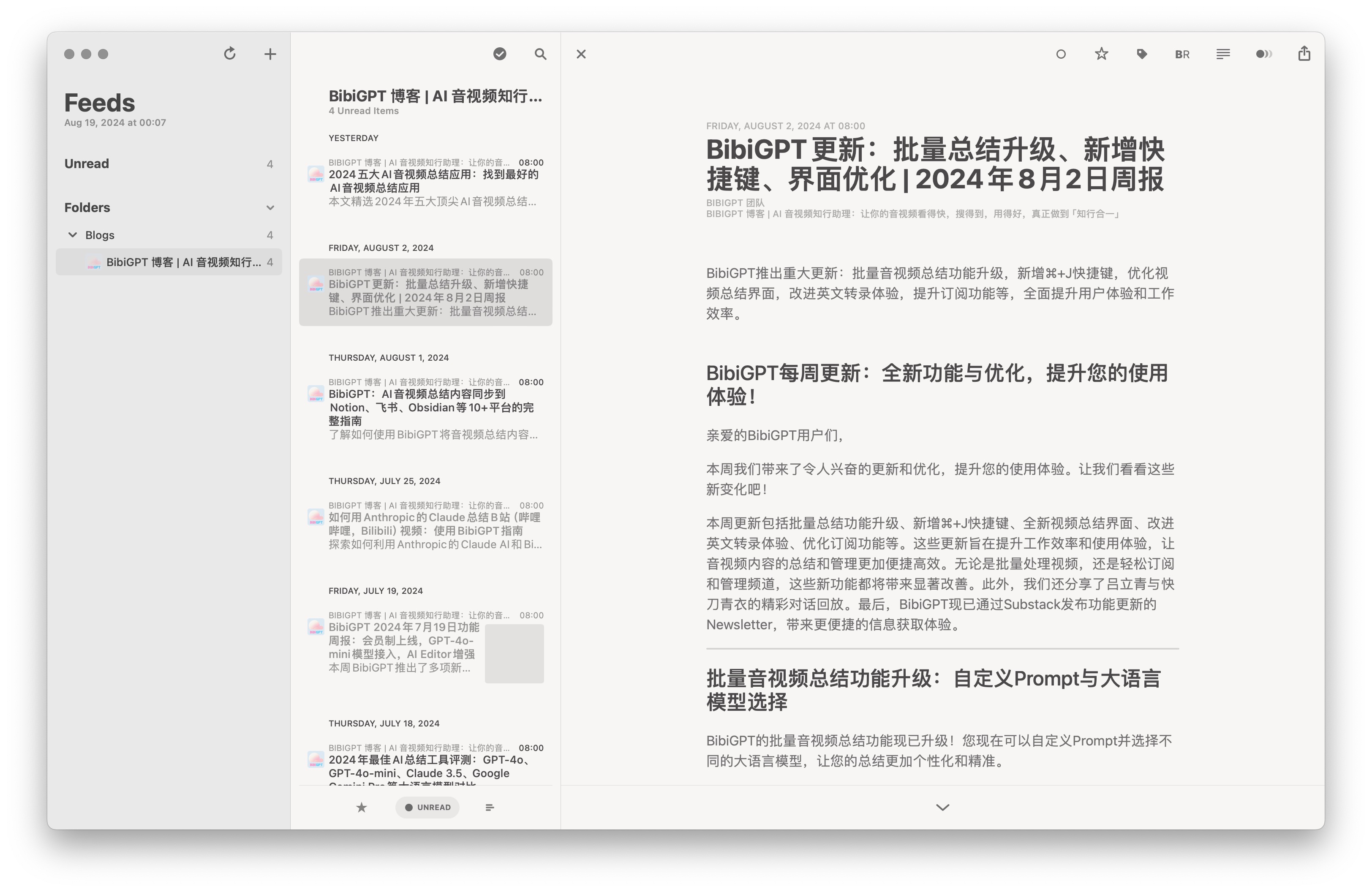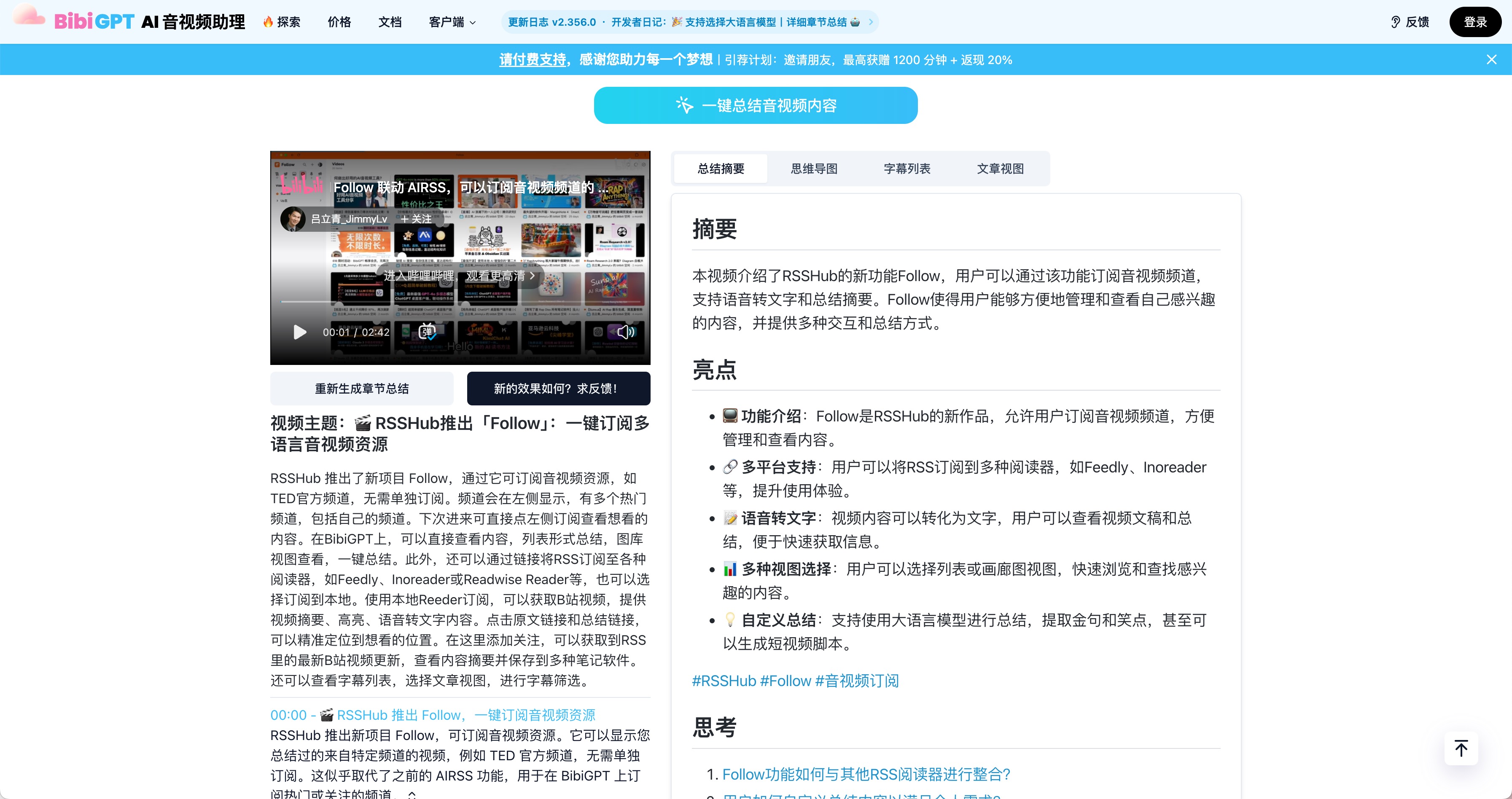 Subscribe at https://bibigpt.co/rss to get product updates in your reader of choice.
