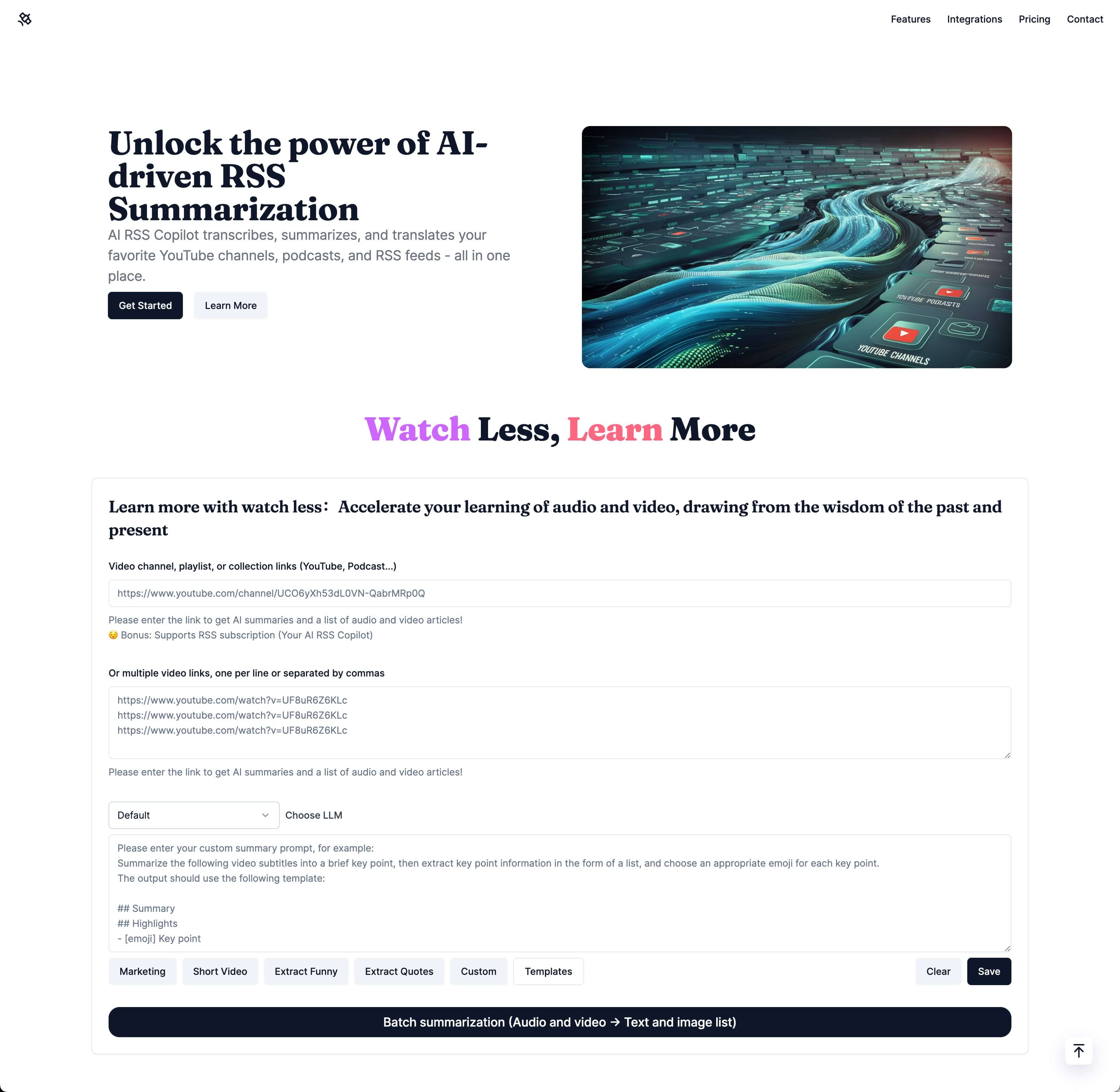 AIRSS now converts YouTube, Bilibili, and RSS feeds into AI-powered summaries. Generate channel-specific feeds with URLs like airss.co/https://www.youtube.com/@mreflow and keep up with your favorite creators automatically.