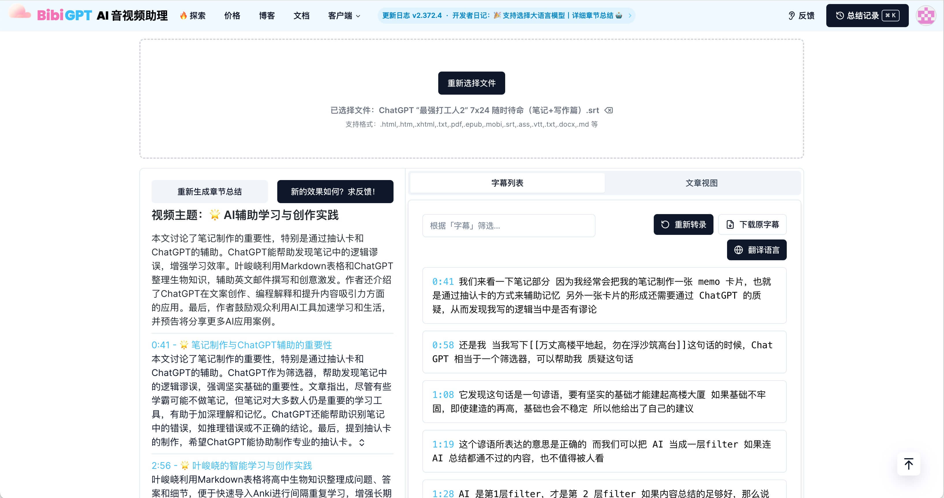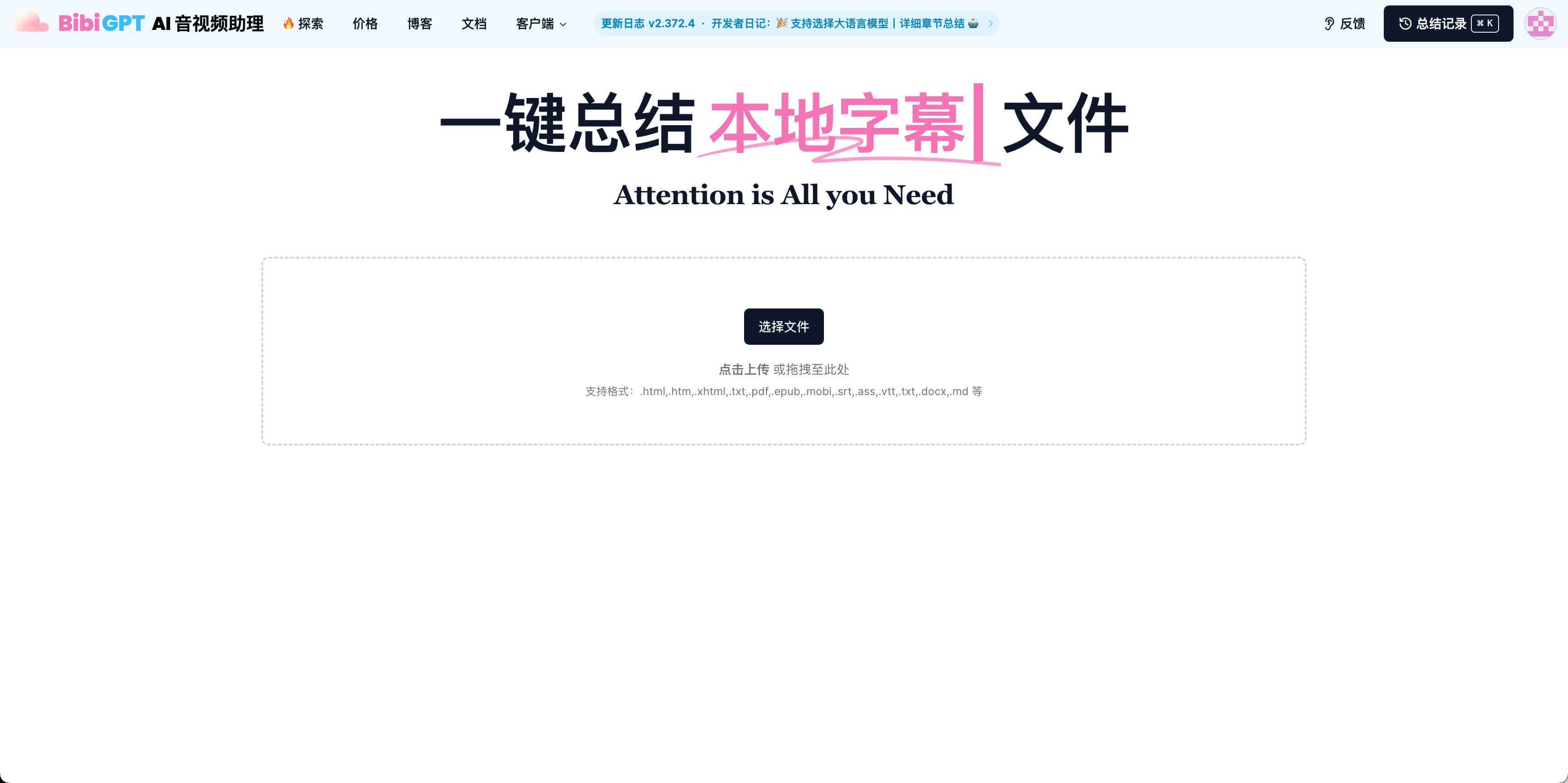BibiGPT Weekly Update · August 30, 2024 – Subtitle Uploads, AIRSS Refresh, Smarter Search