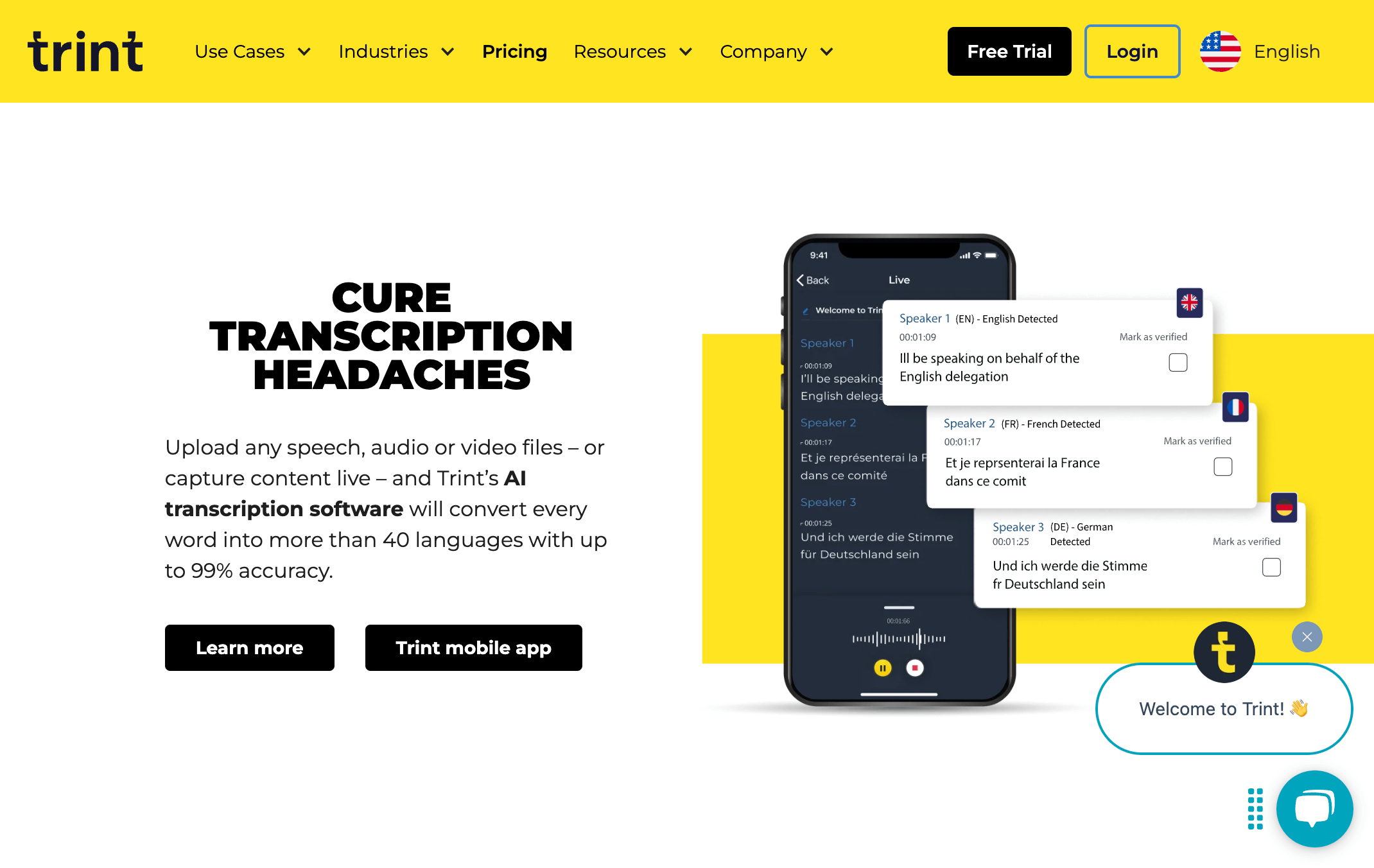 - Timecode management, speaker labeling, and powerful search