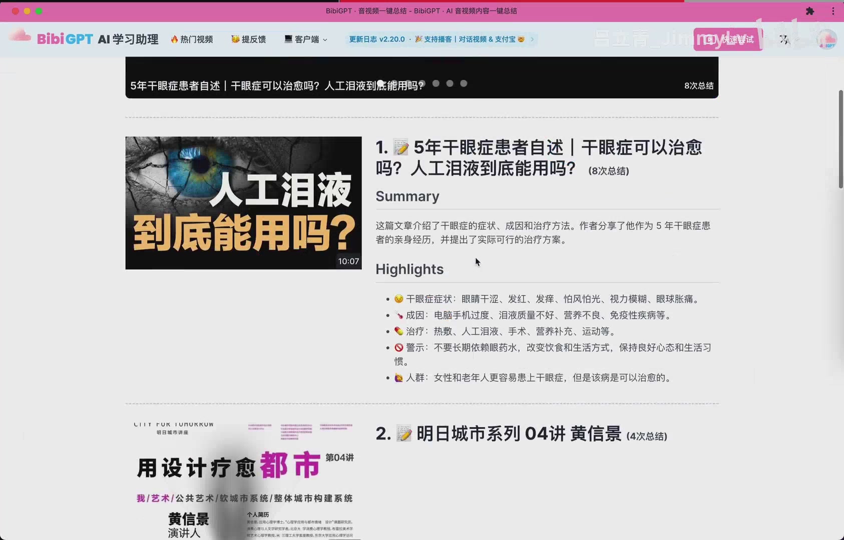 In the demo, an AudioPen tutorial is summarised into a tidy Summary plus Highlights block. Users no longer had to scrub a timeline hunting for takeaways; they could scan bullet points, understand the gist, and then decide whether to dive deeper. Support for Bilibili, YouTube, and other sources was already in place, signalling the ambition to be platform-agnostic from the beginning.