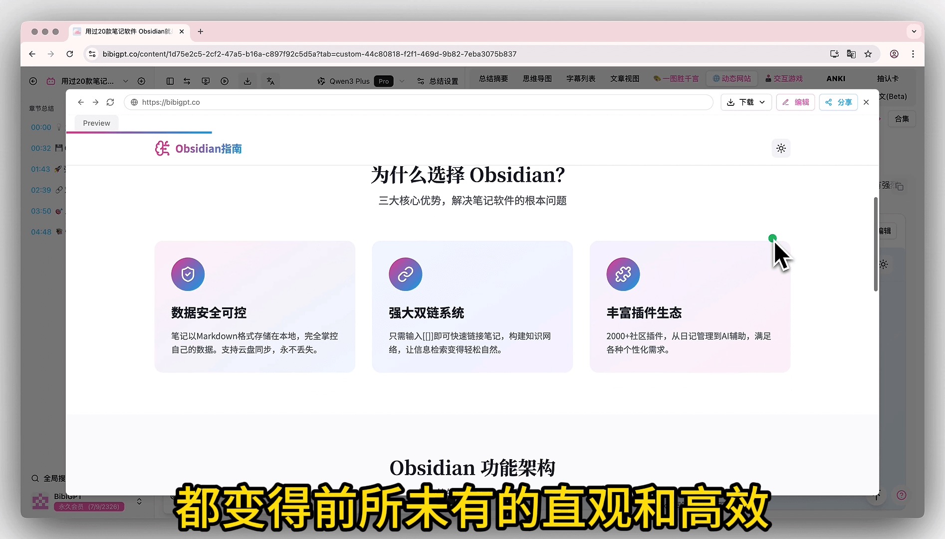 Example: “Tried 20 note-taking apps, why I chose Obsidian.” BibiGPT rebuilds the talk into a responsive microsite: