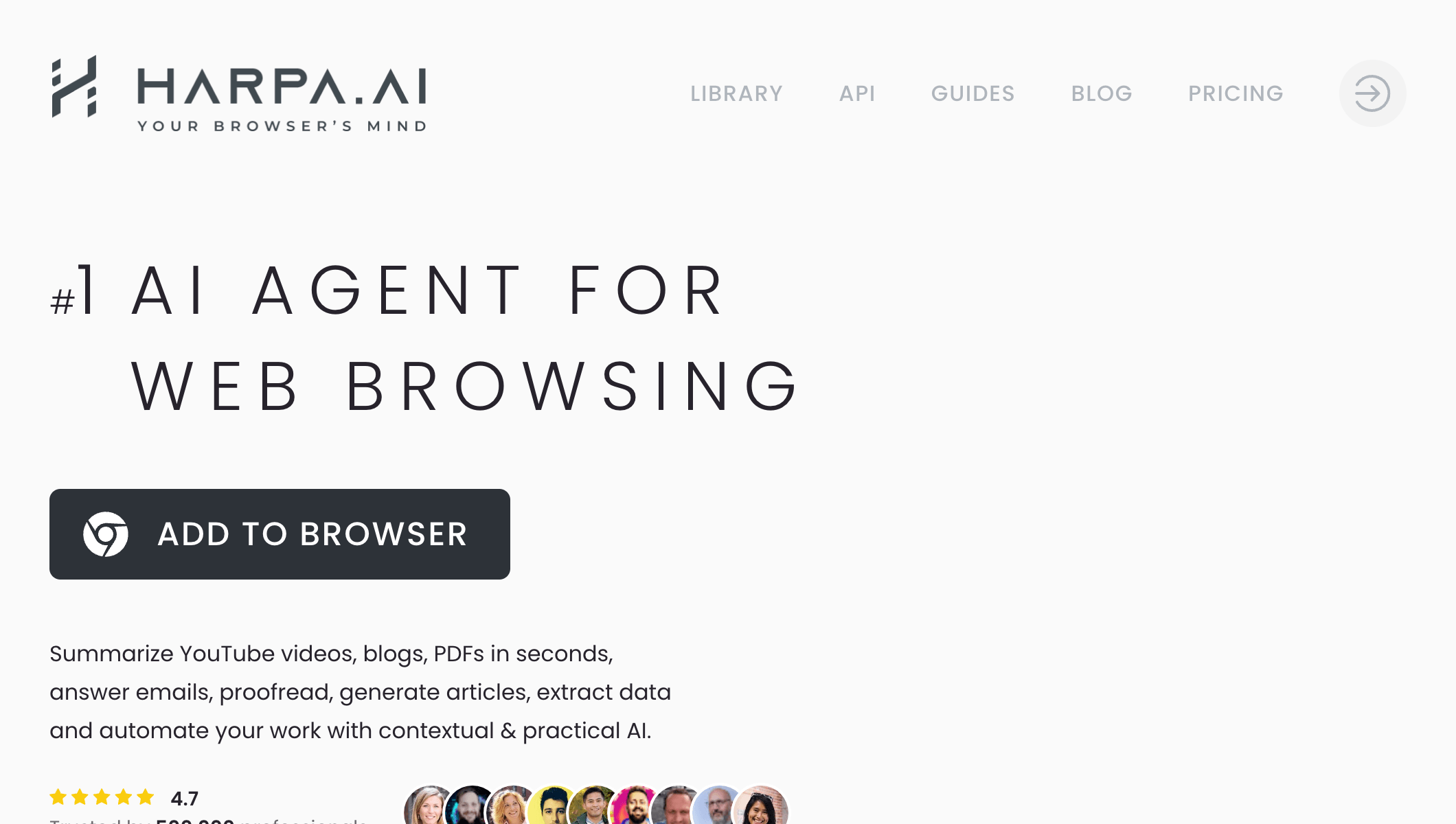 核心功能: HARPA AI是一款功能极其丰富的Chrome浏览器扩展,集成了多种AI模型(ChatGPT, Claude, Gemini等)。它能快速总结长视频,并具备AI辅助搜索、网页内容总结、自动撰写邮件、提取SEO关键词等超过100种预定义命令。