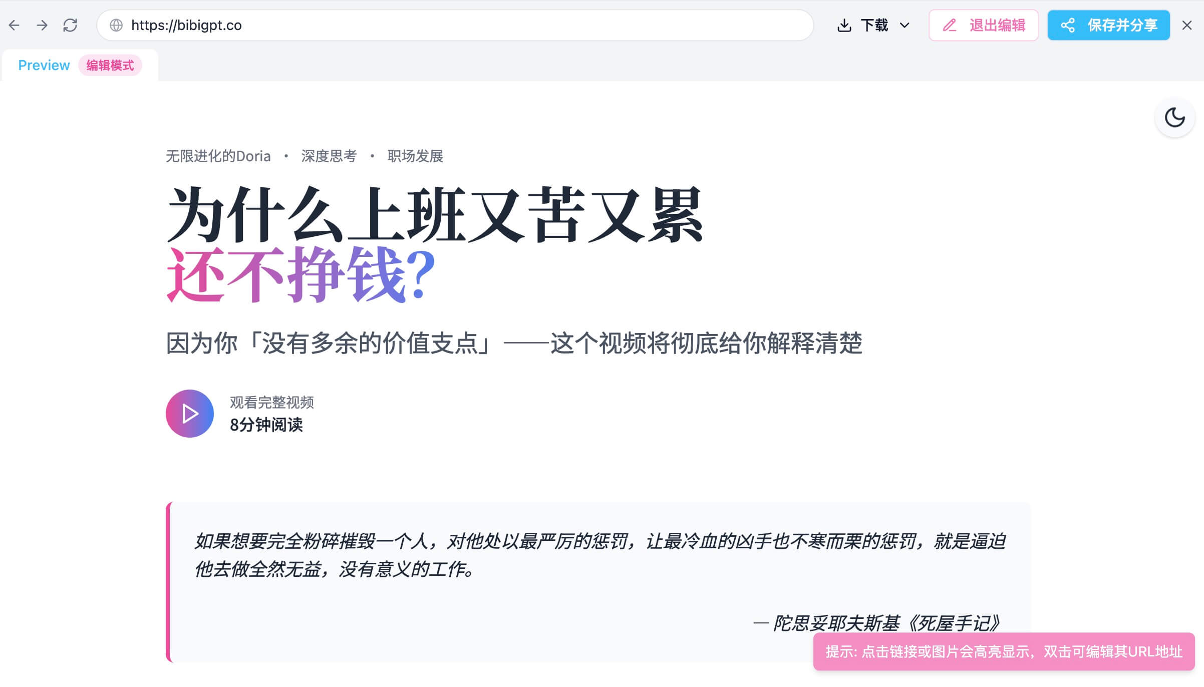 Imagine if every video you summarise automatically generated a mini website. Knowledge Leap does exactly that: chapters become sections, transcripts turn into editable pages, and you can add external links or annotations for further study.