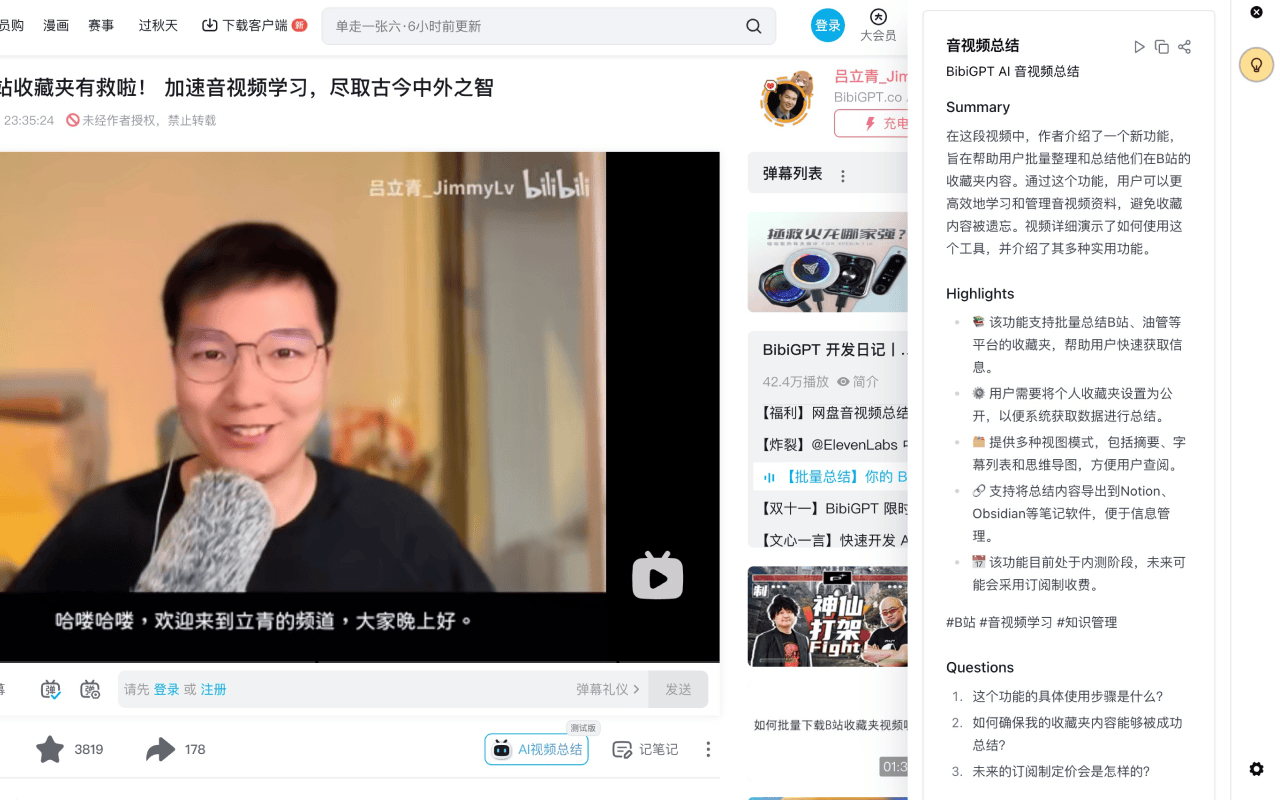 基于强大的大语言模型和 BibiGPT AI 音视频助理技术,让每次上网都成为知识积累的好机会。